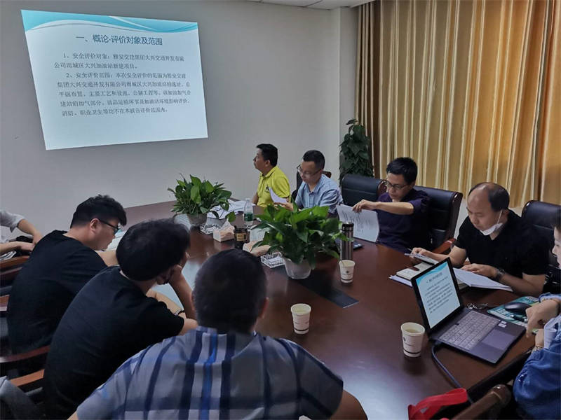 會(huì)上,專家們認(rèn)真聽取了安全預(yù)評(píng)編制單位的詳細(xì)匯報(bào),對(duì)雨城區(qū)大興加油加氣站的選址、總平面布置、主要工藝和設(shè)施、公輔工程等進(jìn)行評(píng)審,并提出了審查意見。