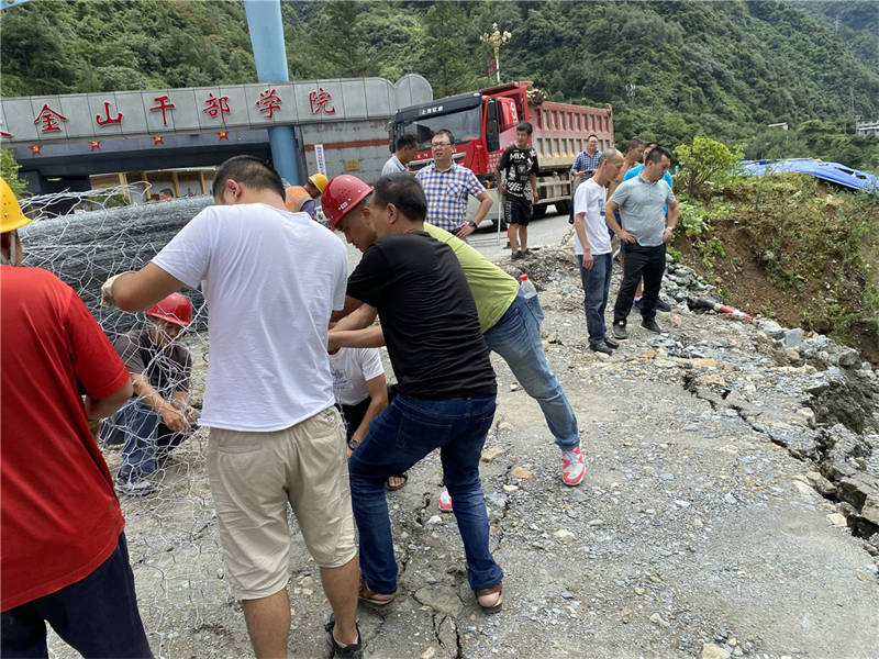 面對災(zāi)情,交建路橋公司立即啟動抗洪搶險應(yīng)急預(yù)案,領(lǐng)導(dǎo)班子成員迅即分赴各項(xiàng)目現(xiàn)場,奮力組織搶險救災(zāi)。在茶地坎組織60余人,投入裝載機(jī)、挖掘機(jī)、運(yùn)輸車、灑水車、發(fā)電機(jī)等各類機(jī)具車輛19臺,對駐地及施工便道進(jìn)行清淤,全面噴施滅菌藥物進(jìn)行消殺;在S104線組織80余人,投入機(jī)具、車輛25臺,開展施工現(xiàn)場清淤、交通協(xié)管、道路清洗等工作;在“8.22”水毀項(xiàng)目組織80余人的搶險突擊隊(duì),成立9個搶險小組,投入各類機(jī)具車輛52臺,在G351線、S432線等塌方、水毀路段搶險救援,對青仁鄉(xiāng)邛蘆路道路進(jìn)行清淤,疏通S106線將軍碑橋涵洞,埋制王家村應(yīng)急涵管;在風(fēng)鳴物流園組織20余人,投入機(jī)具車輛11臺,對草壩鎮(zhèn)、鳳鳴鄉(xiāng)部分道路、河道清淤、疏通;在G318線組織60余人,投入機(jī)具車輛16臺,排查災(zāi)損損點(diǎn),對坍塌路段進(jìn)行搶修。