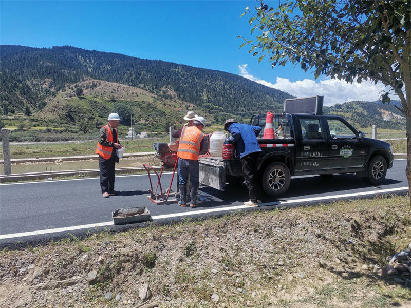 經過5天4夜連續(xù)奮戰(zhàn),檢測小組克服高海拔、缺氧、寒冷等困難,完成捧塔鄉(xiāng)至兩河口資源公路、熱柯大橋、澤木橋等12個扶貧檢測項目,累計檢測里程達311.7公里,抽檢了路面厚度、路面強度、梁板強度、波形護欄鍍鋅層厚度、立柱壁厚等數(shù)十個參數(shù),圓滿完成了本次扶貧幫扶檢測任務。