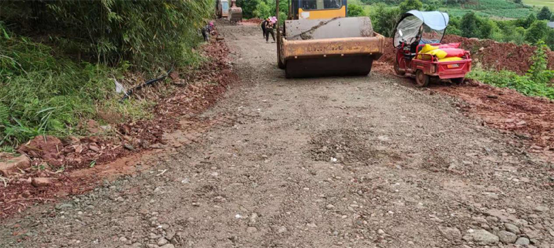 在路橋公司承接的“世界銀行貸款蘆山地震災(zāi)后恢復(fù)重建天全縣始陽(yáng)至新華農(nóng)村公路”項(xiàng)目天全縣新華鄉(xiāng)柏樹村至永安村段,其村道路面結(jié)構(gòu)層差,路基窄,雨水多,晴通雨阻,對(duì)本地農(nóng)產(chǎn)品外運(yùn)造成很大困擾,嚴(yán)重影響了民眾的生產(chǎn)生活。為積極響應(yīng)市委市政府加快雅安市“四好農(nóng)村路”的部署安排,解決當(dāng)?shù)卮迕癯鲂须y、本土農(nóng)產(chǎn)品外銷滯后等問(wèn)題,路橋公司天全項(xiàng)目部主動(dòng)作為,在推進(jìn)項(xiàng)目部主體建設(shè)的同時(shí),堅(jiān)持以問(wèn)題為導(dǎo)向,采用“始新路”施工現(xiàn)場(chǎng)自拌水穩(wěn)料,為村民鋪設(shè)了一段長(zhǎng)臨時(shí)水穩(wěn)路面,方便廣大村民順利出行,促進(jìn)當(dāng)?shù)剞r(nóng)產(chǎn)品物資交流。