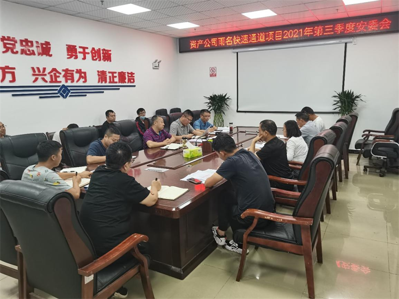 9月9日,資產(chǎn)公司召開(kāi)雨名快速通道項(xiàng)目2021年第三季度安委會(huì),對(duì)雨名快速通道項(xiàng)目第三季度安全工作情況進(jìn)行總結(jié),對(duì)四季度安全工作進(jìn)行安排布置。資產(chǎn)公司經(jīng)營(yíng)班子成員及部門負(fù)責(zé)人,項(xiàng)目總監(jiān)辦總監(jiān)理工程師、安全監(jiān)理工程師、各施工項(xiàng)目部項(xiàng)目及安全負(fù)責(zé)人參加會(huì)議。