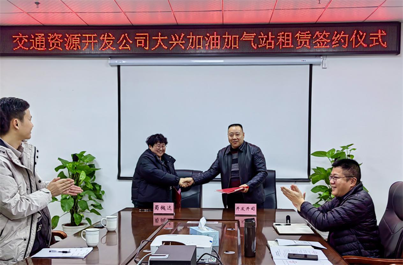 近日,雅安交建集團(tuán)交通資源開發(fā)有限責(zé)任公司(簡稱開發(fā)公司)與四川蜀樾達(dá)石油化工有限公司(簡稱蜀樾達(dá)石化)舉行了大興加油加氣站租賃簽約儀式,蜀樾達(dá)石化公司法人王婭、董事長方高勇,開發(fā)公司董事長、總經(jīng)理王華,開發(fā)公司副總經(jīng)理熊艷、張兵出席簽約儀式。雙方就租賃相關(guān)事項達(dá)成共識,順利完成簽約,大興片區(qū)首個加油加氣站即將投入運營。