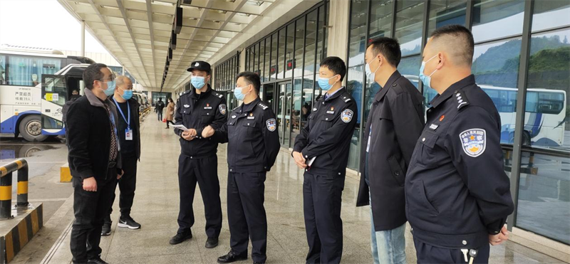 3月31日,省公安廳經(jīng)濟(jì)文化保衛(wèi)總隊(duì)政委余熙高一行深入雅安汽車客運(yùn)站調(diào)研內(nèi)保安全工作。交建集團(tuán)蜀通公司相關(guān)負(fù)責(zé)人陪同。