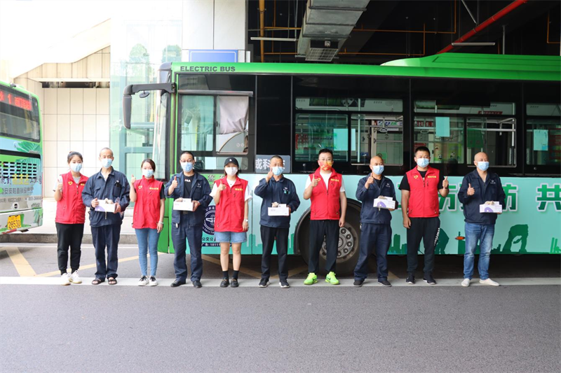 最后,青年團(tuán)員們帶著親手制作的40份防疫香囊、藿香正氣液、口罩等防疫消暑慰問品,來到市區(qū)內(nèi)的各個公交車站點(diǎn)開展了志愿者服務(wù)活動。團(tuán)員志愿者們親手為公交駕駛員師傅送上了慰問物質(zhì),關(guān)切詢問他們的作息時間、身體狀況等,并感謝他們?yōu)槌鞘邪l(fā)展和群眾出行付出的辛苦勞動,同時叮囑大家在高溫季節(jié)一定要注意勞逸結(jié)合,做好防疫和防暑措施。
