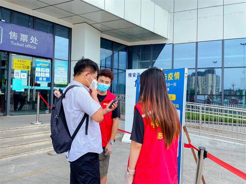 青年志愿者們嚴(yán)格遵守雅安市汽車客運站站長葛舉康為大家講解的疫情防控工作要求,積極投身志愿服務(wù),分別在雅安市火車站進(jìn)出站口、雅安市汽車客運站進(jìn)站口、售票大廳、候車廳等點位駐守,勸導(dǎo)旅客戴好口罩、查驗場所碼、行程碼及核酸報告,并向乘客宣傳疫情防控知識,時刻提醒旅客保持安全距離,認(rèn)真維護(hù)現(xiàn)場秩序。
