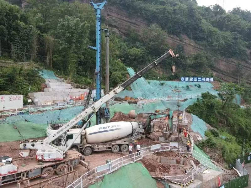 “咚咚咚……”在雨城區(qū)多營鎮(zhèn)五營村熊家山二號隧道出口端空地上,旋挖鉆機(jī)開足馬力,朝著地層深處掘進(jìn),不斷發(fā)出富有節(jié)奏的聲響。“每個(gè)樁基有二十多米深。”國道318線名山區(qū)黑竹(成都界)至雨城區(qū)多營段改建工程項(xiàng)目副經(jīng)理林洲,每天都要到各施工點(diǎn)位查看進(jìn)度。他說,熊家山二號隧道附近山體為順層帶,易產(chǎn)生滑坡,進(jìn)洞施工前需要先在洞外打抗滑樁,以確保施工安全,目前還在開展剩下3根抗滑樁的施工。