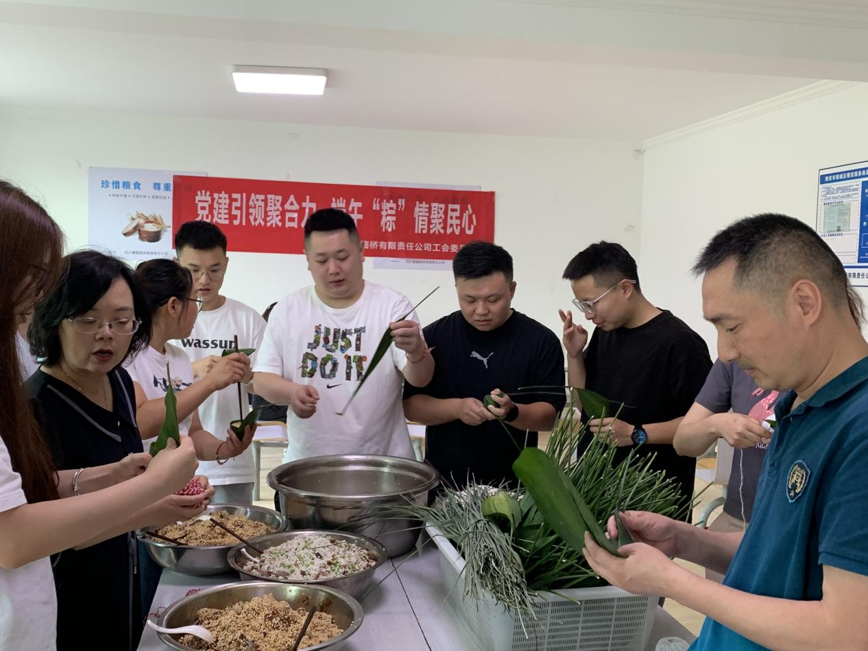 在端午節(jié)即將來臨之際,為大力弘揚中華民族精神,傳承民族優(yōu)良傳統(tǒng),路橋公司黨支部、工會組織各分公司、項目部分片區(qū)開展“黨建引領(lǐng)聚合力 端午“粽”情聚民心”包粽子、做香包活動,積極推進黨建與生產(chǎn)經(jīng)營深度融合,努力把生產(chǎn)經(jīng)營工作的重難點作為黨建工作的著力點、突破點,切實做到哪里有急難險重的任務(wù),哪里就有黨組織攻堅克難,就有黨員沖鋒在前,在沖刺完成年度目標(biāo)任務(wù)的關(guān)鍵時期,充分展示了路橋公司積極干事的精神風(fēng)貌,實現(xiàn)了“凝聚路橋員工之心,銳意進取全面沖刺”的目的。