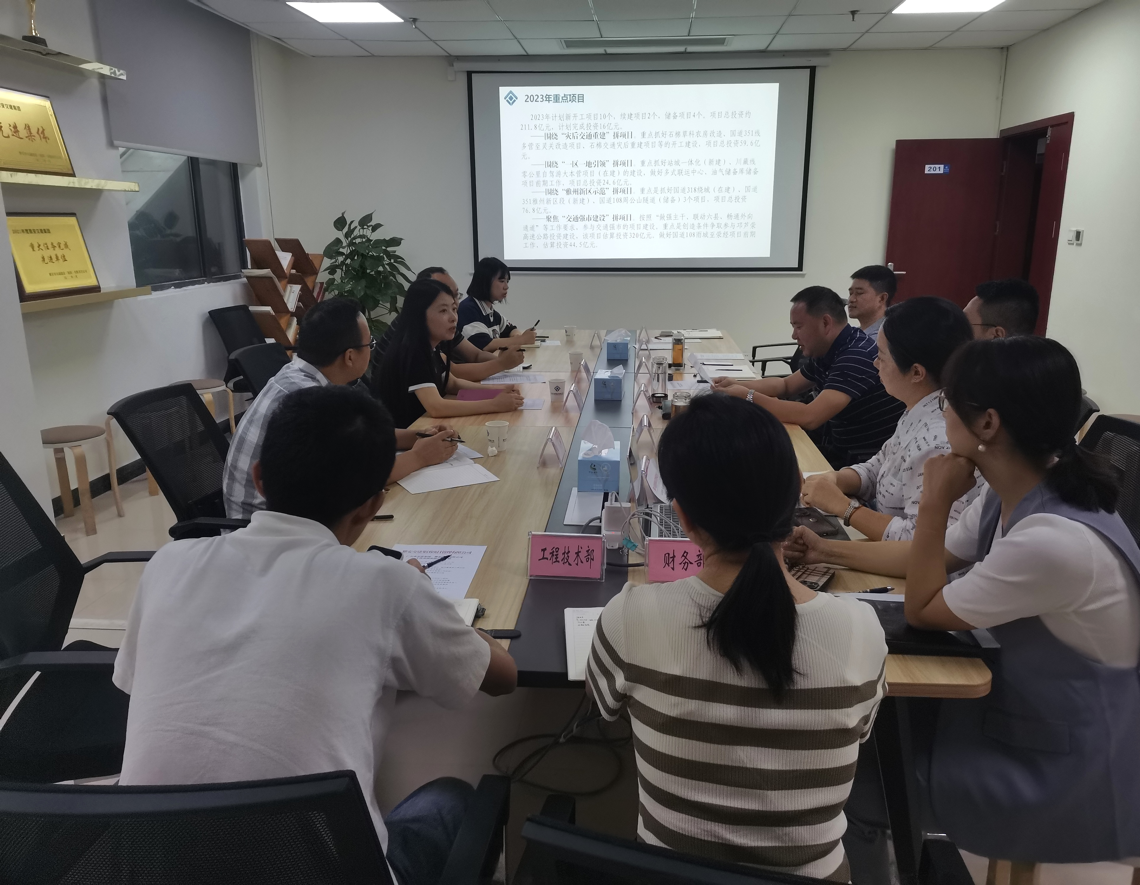 冉小松對廣元市交發(fā)集團來訪人員表示熱烈歡迎,張曦介紹了雅安交建集團相關情況和交建項管公司組織構架、體制機制運行等情況,分享了S104草壩到姚橋、雨名快速通道、G318繞城等項目的管理經(jīng)驗。宋麗萍對交建項管公司成立以來在項目建設管理過程中取得的成績表示贊許,并簡要介紹了廣元市交發(fā)集團情況。
