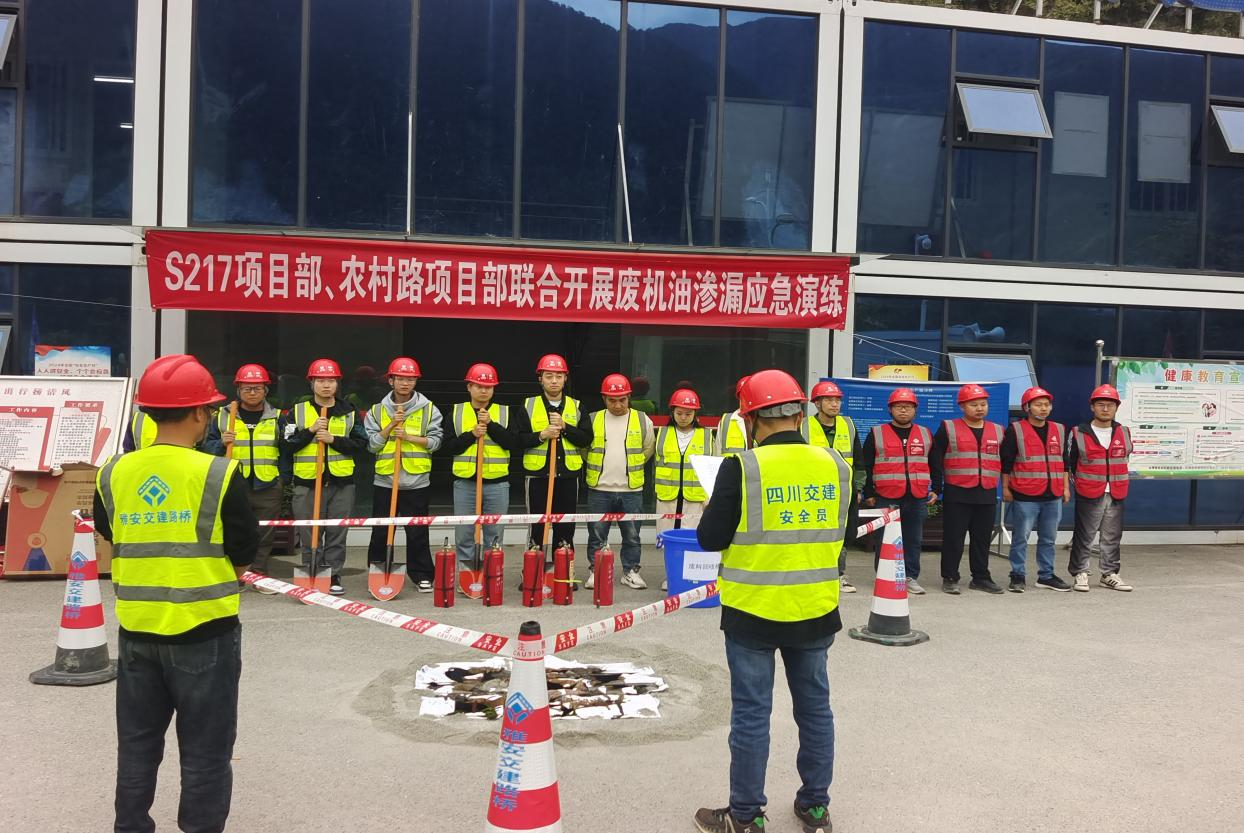 為提高項(xiàng)目管理人員與勞務(wù)人員應(yīng)對(duì)廢機(jī)油滲漏突發(fā)事件的能力,10月25日,雅安交建集團(tuán)路橋公司S217石棉縣王崗坪至石棉縣城段災(zāi)后恢復(fù)重建工程項(xiàng)目部、“9.5”瀘定地震石棉縣受損農(nóng)村公路災(zāi)后恢復(fù)重建工程項(xiàng)目部、石棉縣農(nóng)村公路改造提升工程項(xiàng)目部,聯(lián)合開(kāi)展環(huán)保廢機(jī)油處置應(yīng)急演練。