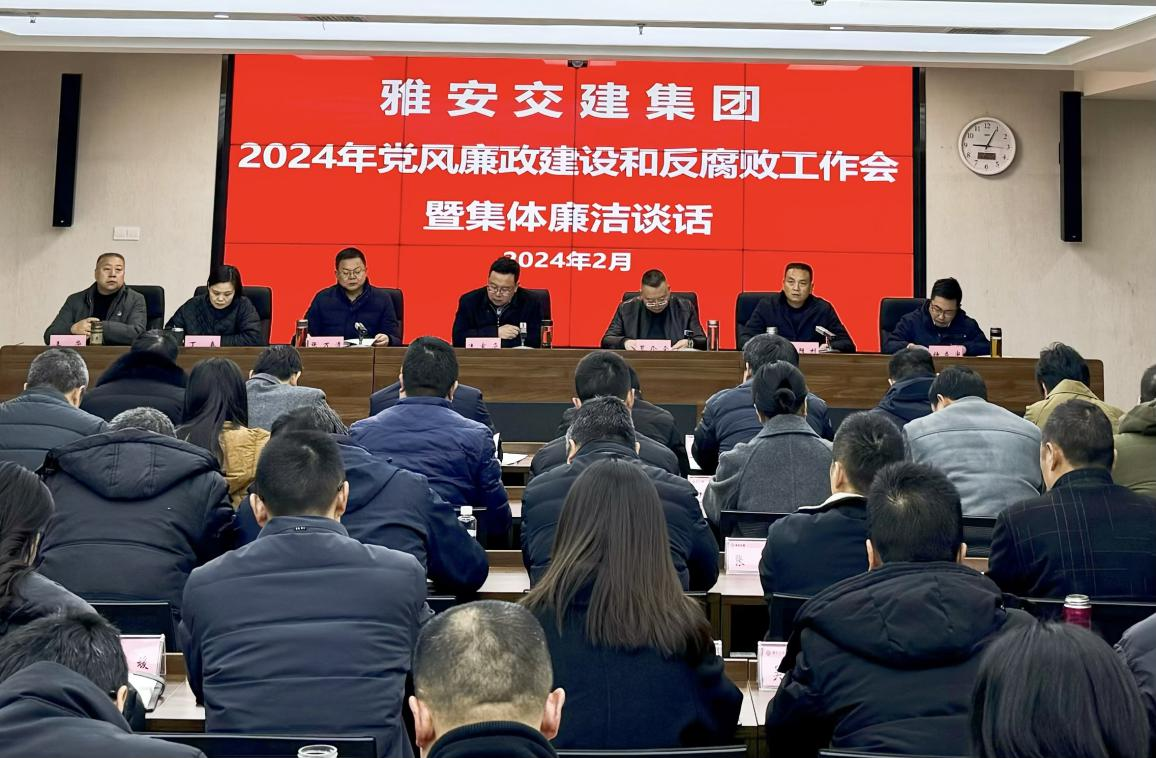為深入學(xué)習(xí)貫徹習(xí)近平總書記關(guān)于黨的自我革命的重要思想,認(rèn)真貫徹落實(shí)二十屆中央紀(jì)委三次全會(huì)、省紀(jì)委十二屆三次全會(huì)和市紀(jì)委五屆四次全會(huì)精神,2024年2月22日,雅安交建集團(tuán)召開2024年黨風(fēng)廉政建設(shè)和反腐敗工作會(huì)暨集體廉潔談話,總結(jié)回顧去年工作,分析當(dāng)前面臨的形勢(shì)和問(wèn)題,安排部署2024年黨風(fēng)廉政建設(shè)和反腐敗工作,并開展集體廉潔談話。