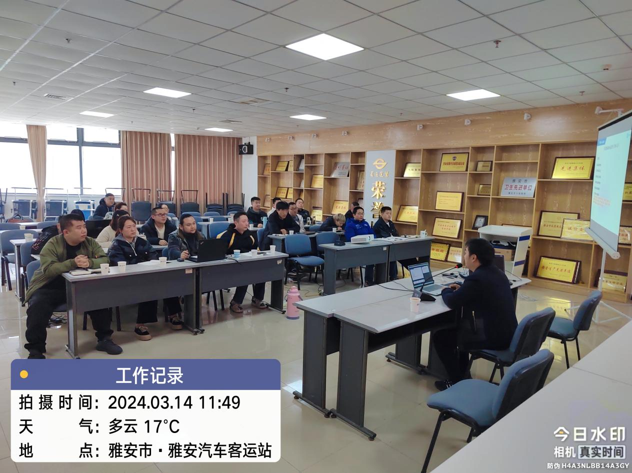 為進一步規(guī)范營運車輛動態(tài)監(jiān)控管理,提高動態(tài)監(jiān)控人員安全責任意識和綜合監(jiān)管能力,結(jié)合雅安市安全生產(chǎn)治本攻堅三年行動要求,2024年3月14日,蜀通公司特邀成都網(wǎng)闊公司技術(shù)工程師,對我司18名專職車輛動態(tài)監(jiān)控管理人員進行業(yè)務培訓。