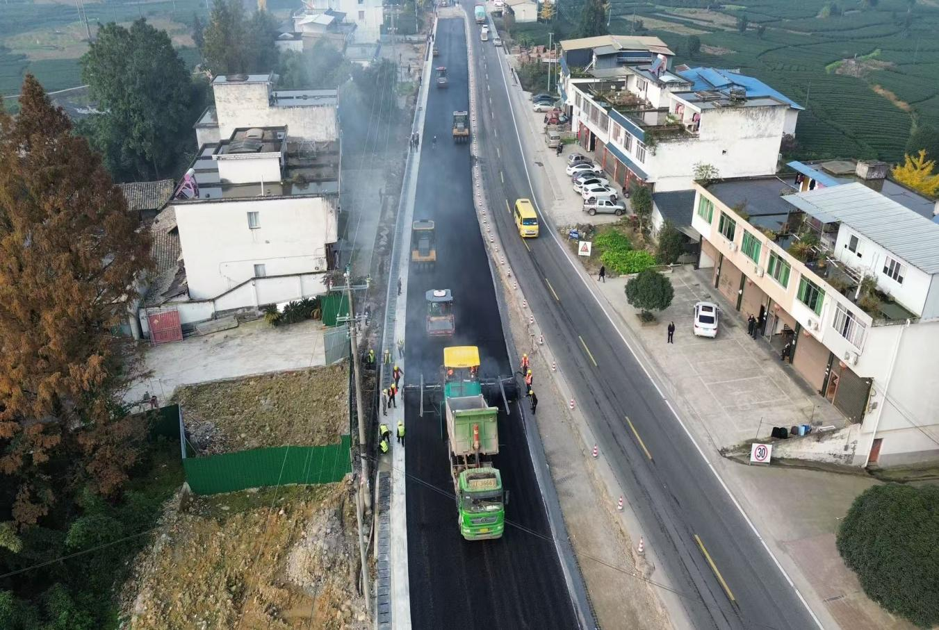 國道318線名山區(qū)黑竹(成都界)至雨城區(qū)多營段改建項目作為四川省重點項目,同時也是雅安“三區(qū)”同城化經(jīng)濟環(huán)線中北環(huán)線的重要組成部分,自開工以來始終保持高效推進態(tài)勢。為實現(xiàn)2026年春節(jié)前主體工程貫通目標,近期,項目建設現(xiàn)場掀起“大干快上”熱潮,全體參建單位以“時不我待”的緊迫感沖刺節(jié)點任務,各項工作取得突破性進展。截至目前,項目累計完成投資24.95億元,完成產(chǎn)值17.6億元;路基、橋涵、隧道工程均完成90%以上,陸續(xù)進入路面工程階段,前12公里改建段已建成通車。