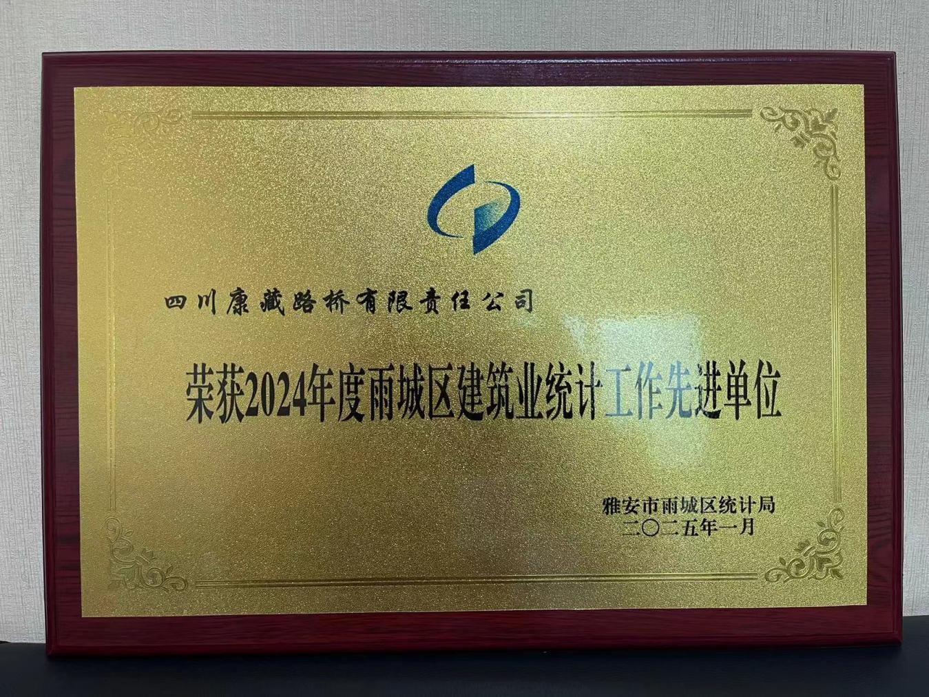 2025年1月,雅安市雨城區(qū)統(tǒng)計局授予四川康藏路橋有限責(zé)任公司“2024年度雨城區(qū)建筑業(yè)統(tǒng)計工作先進(jìn)單位”榮譽(yù)稱號。過去的一年,路橋公司積極配合統(tǒng)計工作,保障數(shù)據(jù)準(zhǔn)確及時,為雨城區(qū)建筑業(yè)統(tǒng)計工作的順利開展提供堅實(shí)的數(shù)據(jù)支撐。