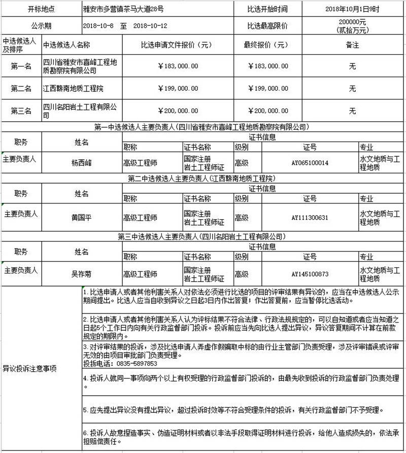 雅安交建集團丹石建材有限公司第二期地質(zhì)勘察服務(wù)項目比選公示