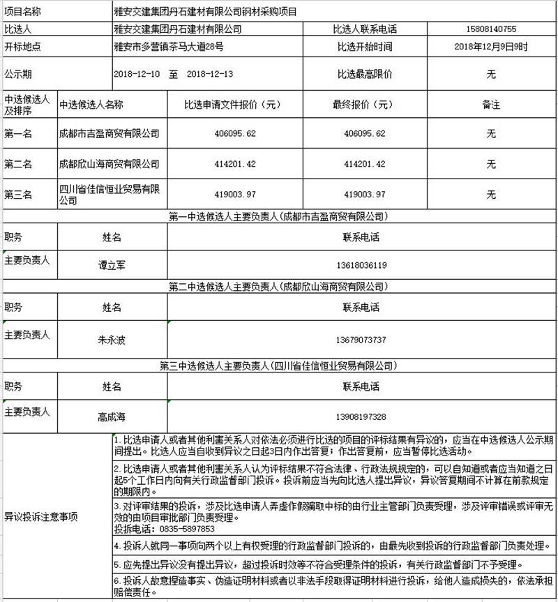 雅安交建集團(tuán)丹石建材有限公司鋼材采購(gòu)項(xiàng)目比選公示