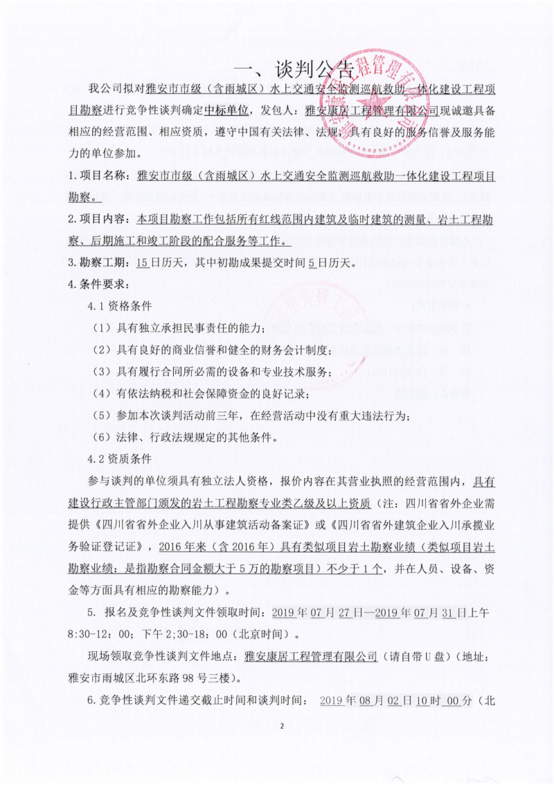 雅安市市級(含雨城區(qū))水上交通安全監(jiān)測巡航救助一體化建設工程項目勘察
