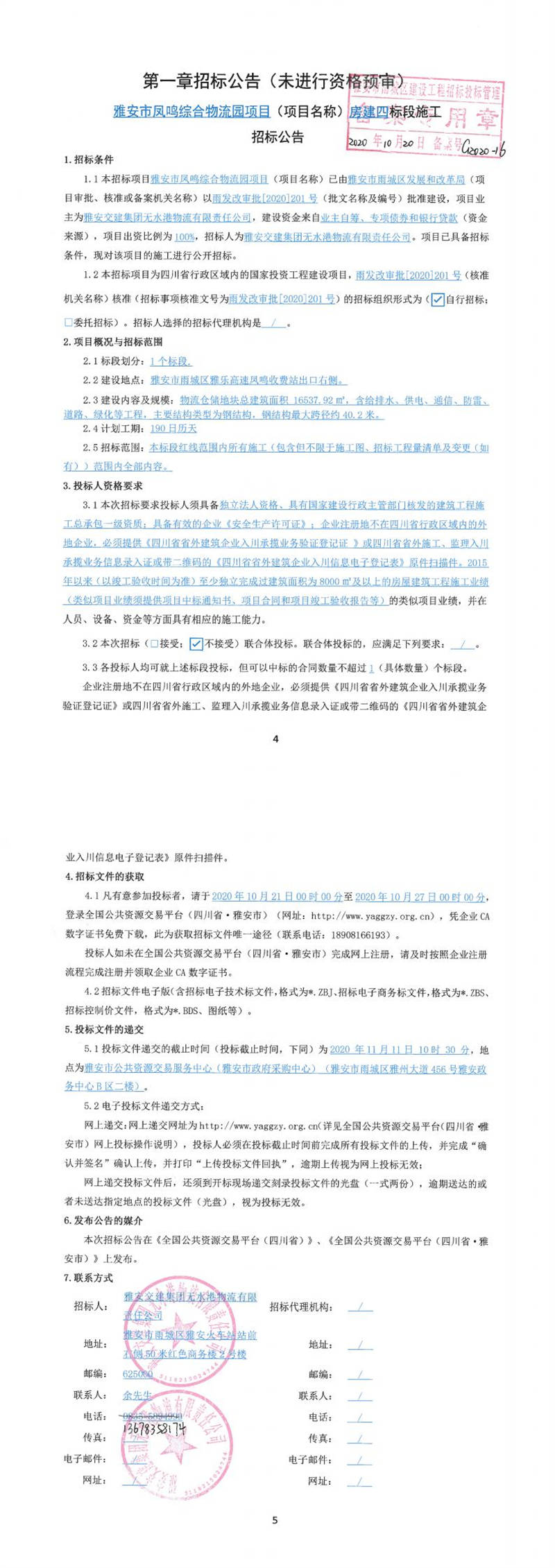 雅安交建集團(tuán)無(wú)水港物流有限責(zé)任公司雅安市鳳鳴綜合物流園項(xiàng)目(項(xiàng)目名稱)房建四標(biāo)段施工招標(biāo)公告
