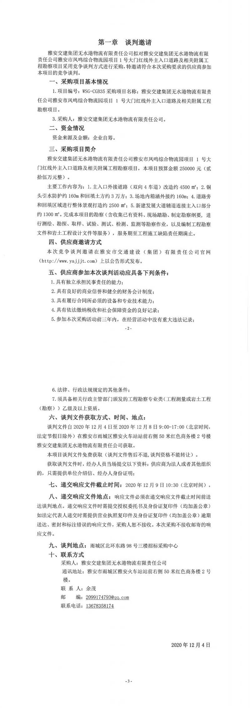 雅安交建集團(tuán)無(wú)水港物流有限責(zé)任公司雅安市鳳鳴綜合物流園項(xiàng)目1號(hào)大門紅線外主入口道路及相關(guān)附屬工程勘察項(xiàng)目談判公告