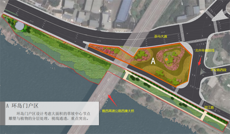 2.項目地點(diǎn):雅安市雨城區(qū)斗膽片區(qū)茶馬大道、北環(huán)路、康藏路、濱江路交匯處,雅西高速公路西康大橋立交橋下。