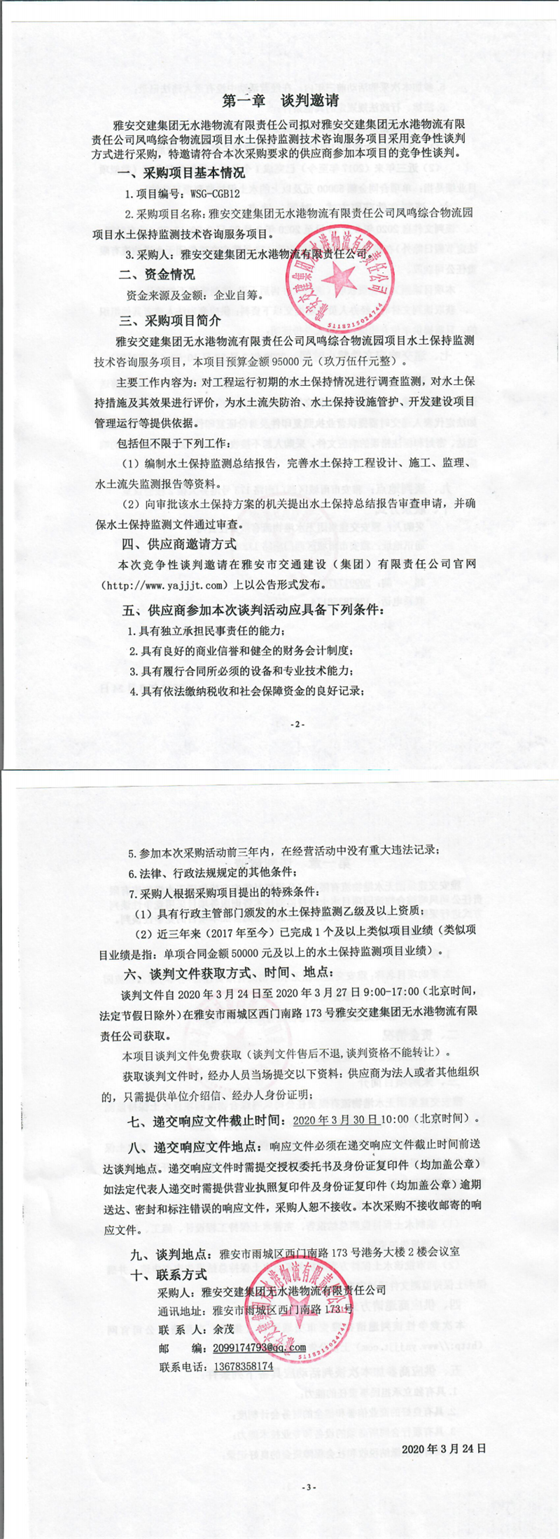 雅安交建集團(tuán)無水港物流有限責(zé)任公司鳳鳴綜合物流園項(xiàng)目水土保持監(jiān)測技術(shù)咨詢服務(wù)項(xiàng)目競爭性談判公告