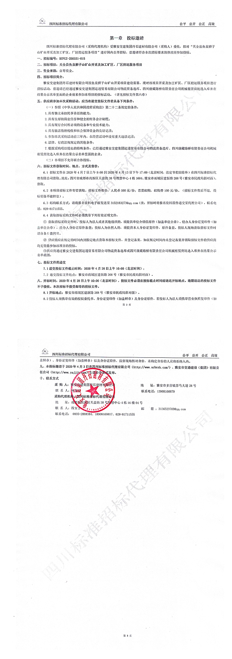 雅安交建集團丹石建材有限公司天全縣魚泉獅子山礦山開采及加工礦區(qū)、廠區(qū)挖運服務(wù)項目招標(biāo)公告