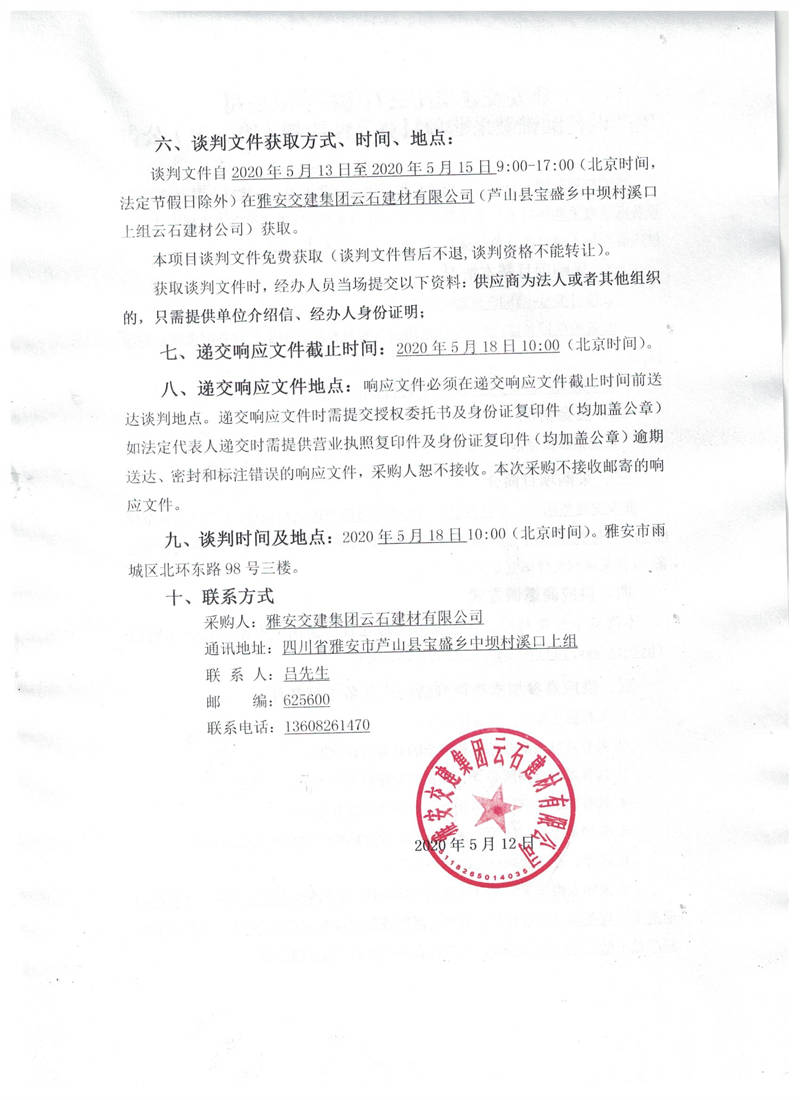 雅安交建集團云石建材有限公司生產(chǎn)設(shè)備圓錐破采購項目競爭性談判(第三次)公告