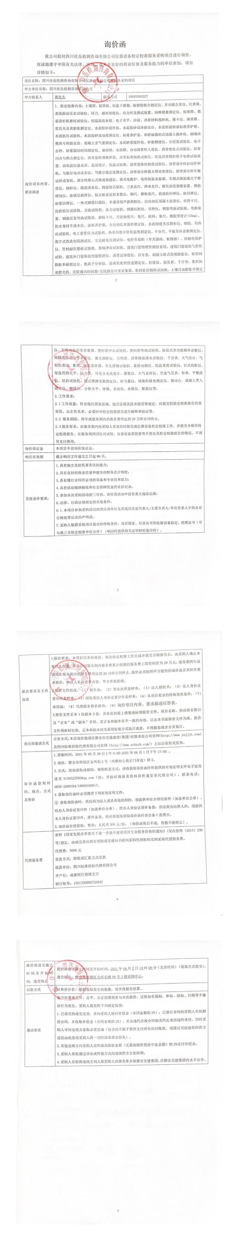 四川佳岳檢測(cè)咨詢有限公司儀器設(shè)備檢定校準(zhǔn)服務(wù)采購詢價(jià)公告