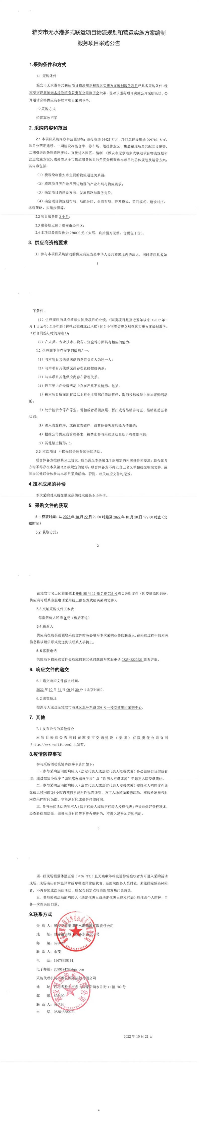 雅安交建集團(tuán)無(wú)水港物流有限責(zé)任公司雅安市無(wú)水港多式聯(lián)運(yùn)項(xiàng)目物流規(guī)劃和營(yíng)運(yùn)實(shí)施方案編制服務(wù)項(xiàng)目采購(gòu)公告