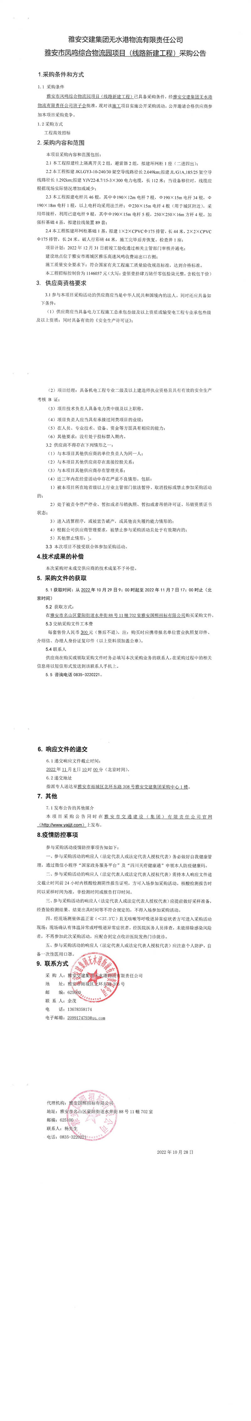 雅安交建集團(tuán)無水港物流有限責(zé)任公司雅安市鳳鳴綜合物流園項(xiàng)目(線路新建工程)采購公告
