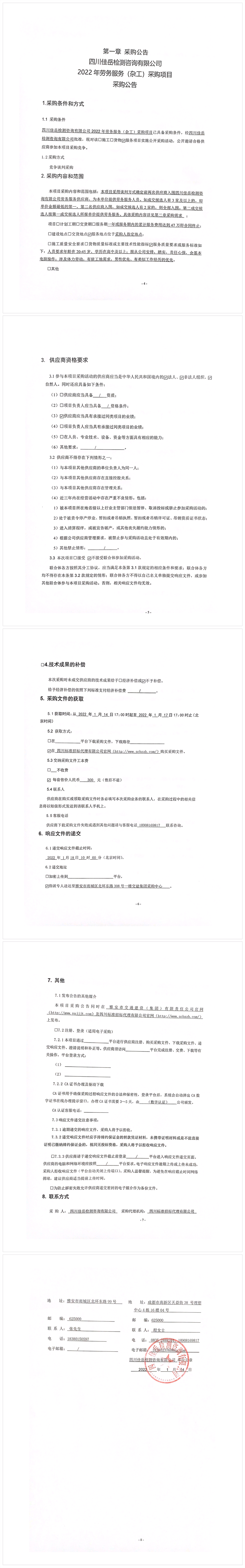 四川佳岳檢測咨詢有限公司2022年勞務(wù)服務(wù)(雜工)采購項目采購公告