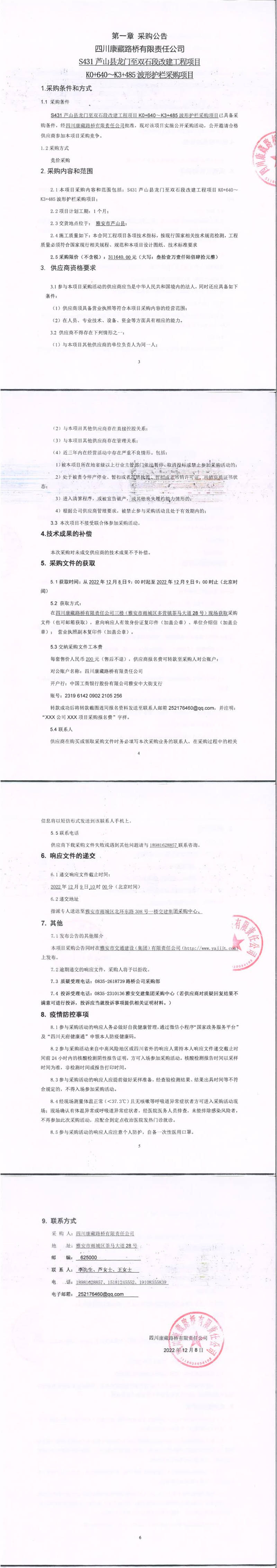 四川康藏路橋有限責(zé)任公司S431蘆山縣龍門(mén)鎮(zhèn)至雙石段改建工程項(xiàng)目K0+640-K3+485波形護(hù)欄采購(gòu)項(xiàng)目采購(gòu)公告