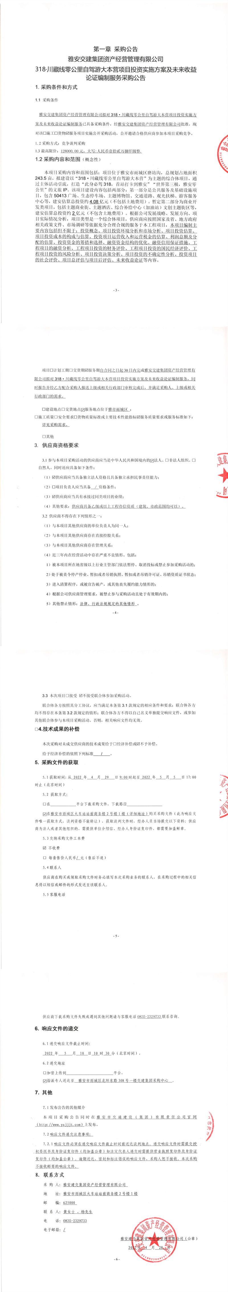 雅安交建集團(tuán)資產(chǎn)經(jīng)營(yíng)管理有限公司318·川藏線零公里自駕游大本營(yíng)項(xiàng)目投資實(shí)施方案及未來(lái)收益論證編制服務(wù)采購(gòu)公告
