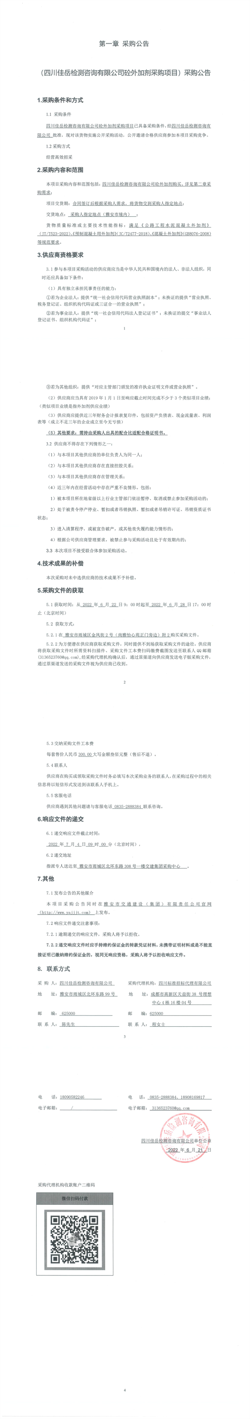 四川佳岳檢測咨詢有限公司砼外加劑采購項(xiàng)目采購公告