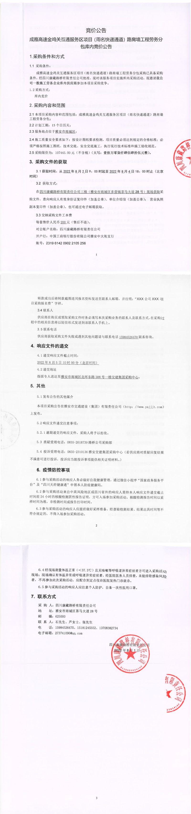 四川康藏路橋有限責(zé)任公司成雅高速金雞關(guān)互通服務(wù)區(qū)項目(雨名快速通道)路肩墻工程勞務(wù)分包庫內(nèi)競價公告