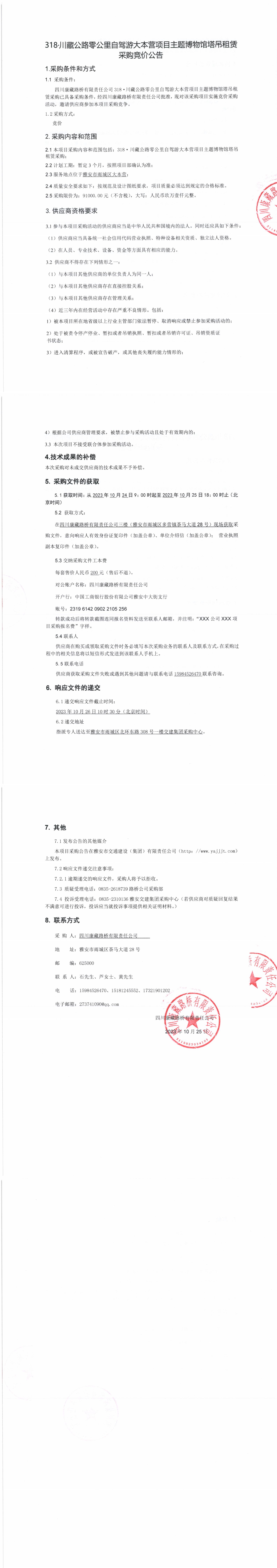 四川康藏路橋有限責(zé)任公司318·川藏公路零公里自駕游大本營項(xiàng)目主題博物館塔吊租賃采購競價(jià)公告