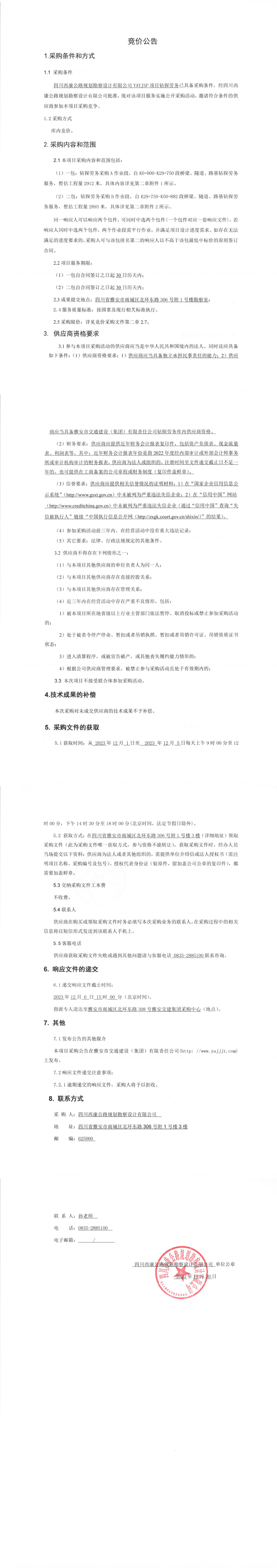 四川西康公路規(guī)劃勘察設(shè)計(jì)有限公司YAYJSP目鉆探勞務(wù)競價(jià)公告