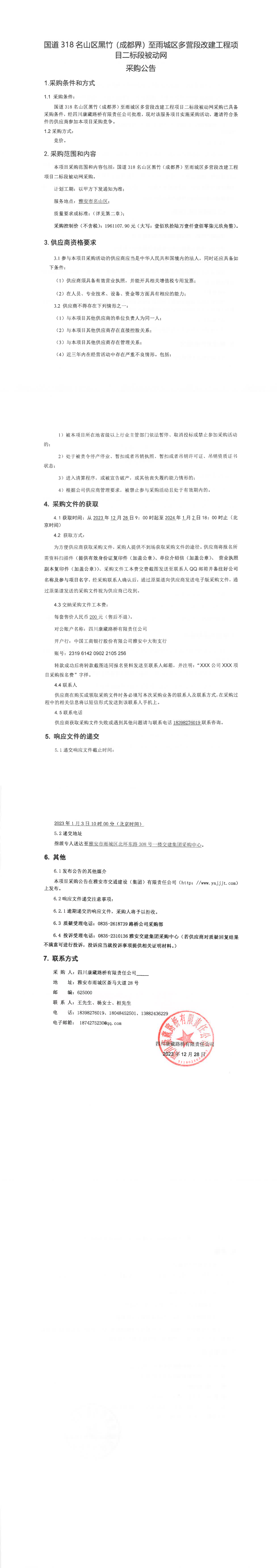 四川康藏路橋有限責任公司國道318名山區(qū)黑竹(成都界)至雨城區(qū)多營段改建工程項目二標段被動網(wǎng)采購公告