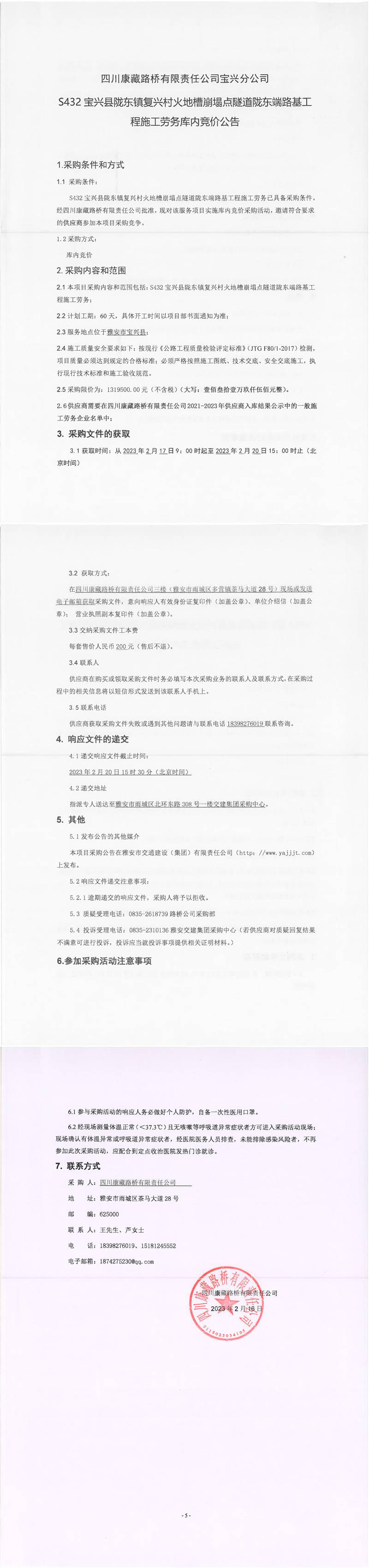 四川康藏路橋有限責(zé)任公司S432寶興縣隴東鎮(zhèn)復(fù)興村火地槽崩塌點(diǎn)隧道隴東端路基工程施工勞務(wù)庫(kù)內(nèi)競(jìng)價(jià)公告