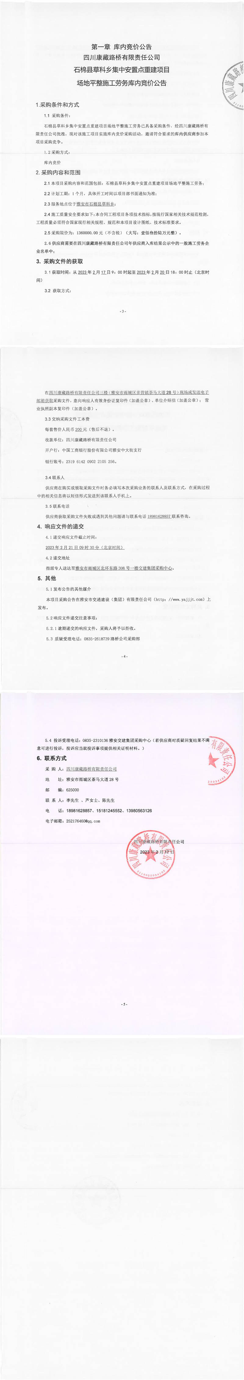 四川康藏路橋有限責任公司石棉草科鄉(xiāng)集中安置點重建項目場地平整施工勞務(wù)庫內(nèi)競價公告