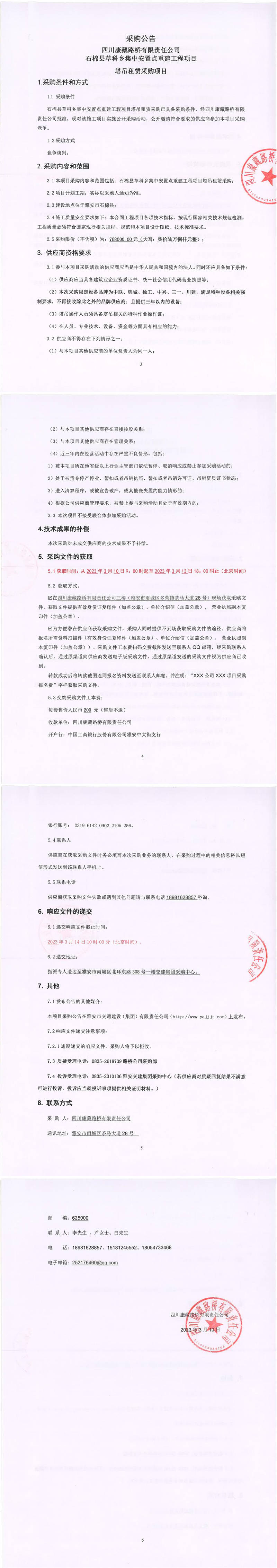 四川康藏路橋有限責(zé)任公司石棉縣草科鄉(xiāng)集中安置點(diǎn)重建工程項(xiàng)目塔吊租賃采購(gòu)公告