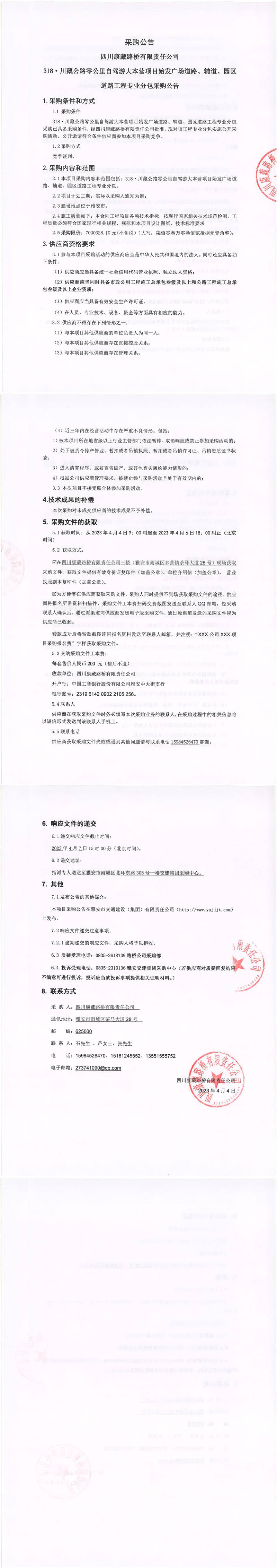 四川康藏路橋有限責任公司318·川藏公路零公里自駕游大本營項目始發(fā)廣場道路、輔道、園區(qū)道路工程專業(yè)分包采購公告