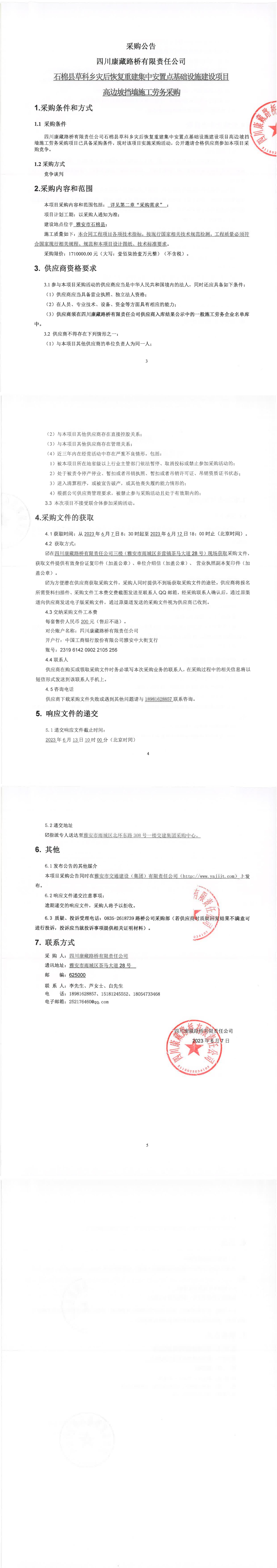 四川康藏路橋有限責任公司石棉縣草科鄉(xiāng)災后恢復重建集中安置點基礎設施建設項目高邊坡?lián)鯄κ┕趧詹少?/h1>