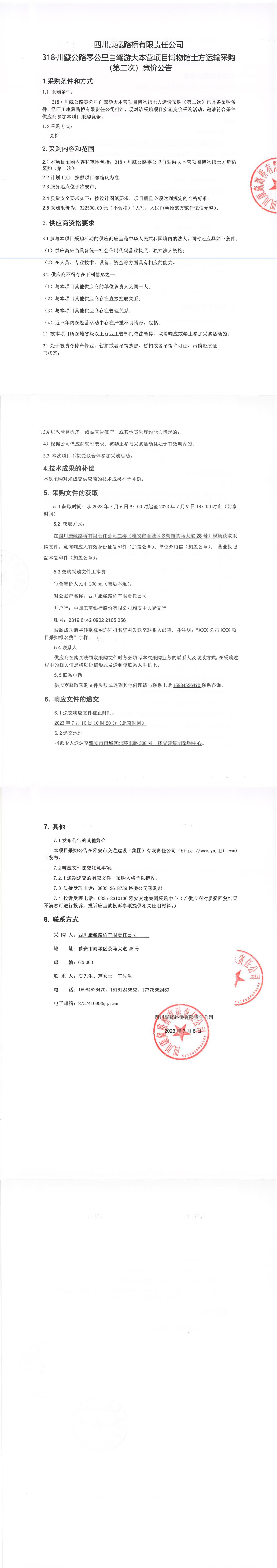 四川康藏路橋有限責(zé)任公司318·川藏公路零公里自駕游大本營項目博物館土方運輸采購(第二次)競價公告