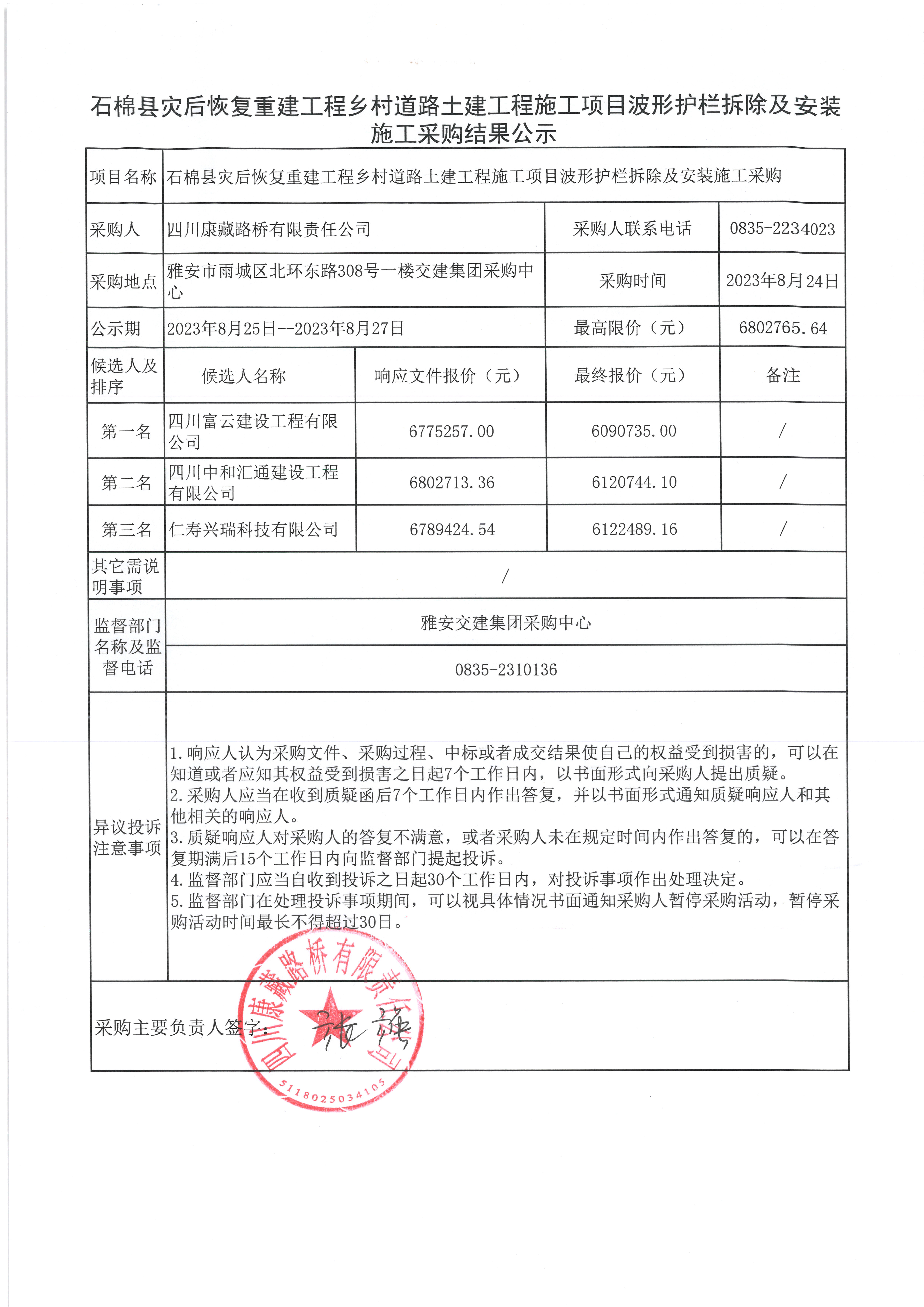 石棉縣災(zāi)后恢復(fù)重建工程鄉(xiāng)村道路土建工程施工項(xiàng)目波形護(hù)欄拆除及安裝施工采購(gòu)結(jié)果公示