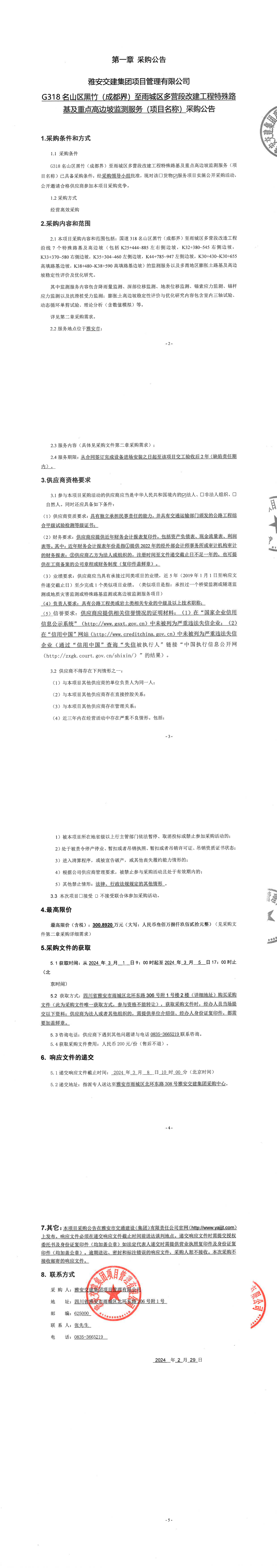雅安交建集團(tuán)項(xiàng)目管理有限公司國道318名山區(qū)黑竹(成都界)至雨城區(qū)多營段改造工程的特殊及重點(diǎn)路基高邊坡監(jiān)測(cè)服務(wù)(項(xiàng)目名稱)采購公告