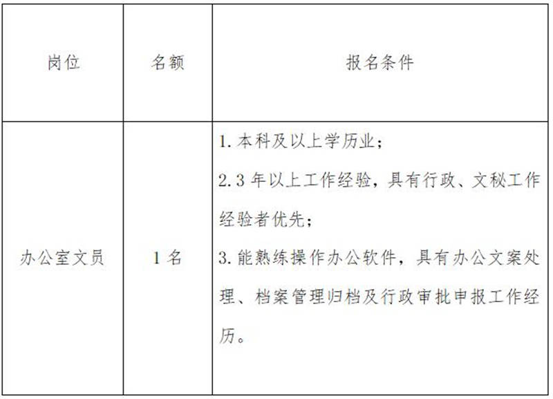 雅安交建集團康居建設(shè)工程質(zhì)量與室內(nèi)環(huán)境污染檢測有限公司是雅安市交通建設(shè)(集團)有限責任公司下屬子公司,主要從事民用建筑室內(nèi)環(huán)境污染檢測業(yè)務(wù),F(xiàn)根據(jù)公司業(yè)務(wù)發(fā)展需要,擬向社會公開招聘1名辦公室文員,現(xiàn)將有關(guān)事項公告如下:
