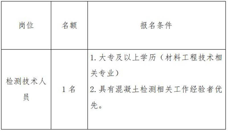 雅安交建集團康居建設工程質(zhì)量與室內(nèi)環(huán)境污染檢測有限公司是雅安市交通建設(集團)有限責任公司下屬子公司,主要從事民用建筑室內(nèi)環(huán)境污染檢測業(yè)務,F(xiàn)根據(jù)公司業(yè)務發(fā)展需要,擬向社會公開招聘1名技術檢測人員,現(xiàn)將有關事項公告如下: