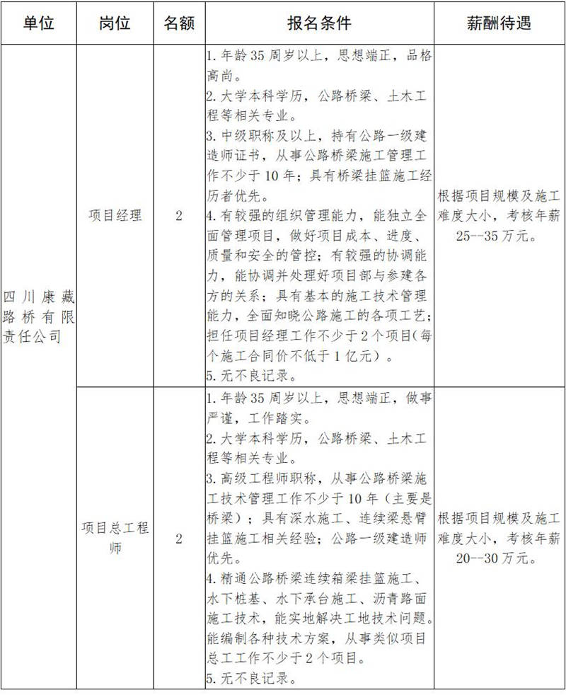 雅安交建集團(tuán)關(guān)于公開招聘所屬子公司工程項(xiàng)目主要負(fù)責(zé)人的公告(路橋公司)