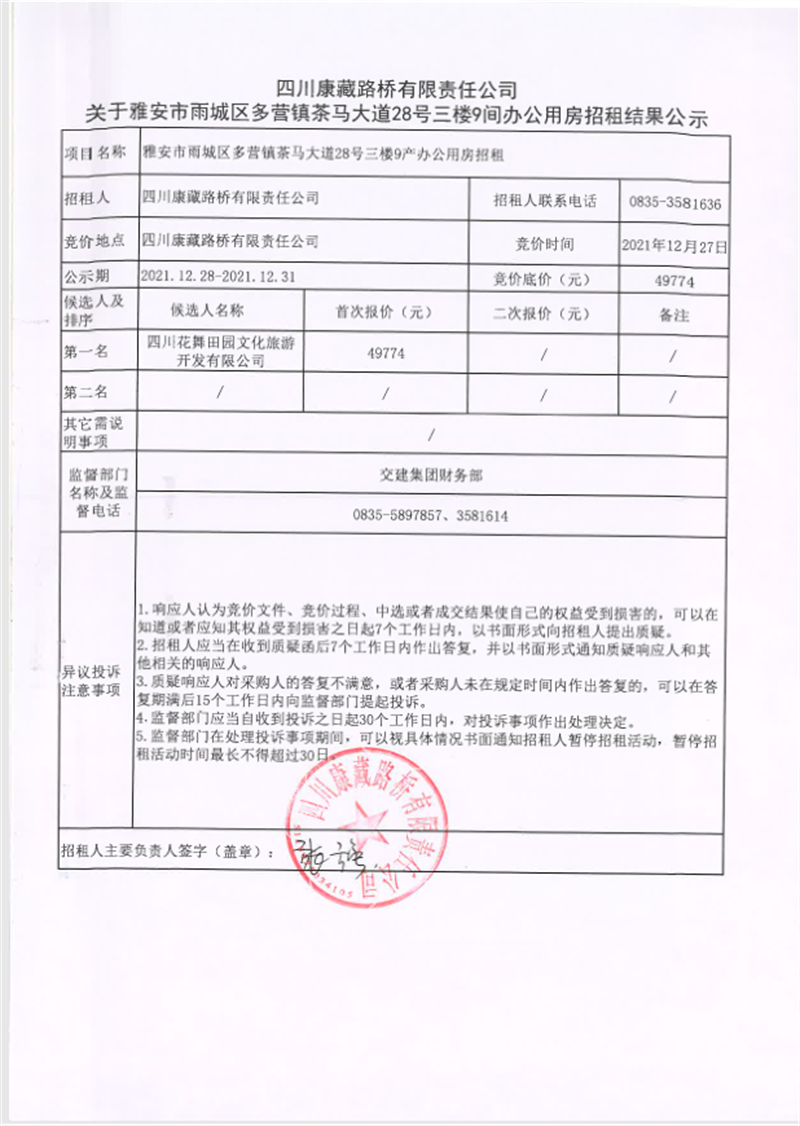 ËÄ´¨¿µ²ØÂ·˜òÓÐÏÞØŸ(z¨¦)Èι«Ë¾êP(gu¨¡n)ÓÚÑŰ²ÊÐÓê³Ç…^(q¨±)¶à I(y¨ªng)æ‚(zh¨¨n)²èñR´óµÀ28Ì–(h¨¤o)Èý˜Ç9égÞk¹«Ó÷¿ÕÐ×âµÄ¹«¸æ