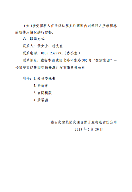 雅安交建集團(tuán)交通資源開(kāi)發(fā)有限責(zé)任公司雨名快速通道(名山服務(wù)區(qū))4、5號(hào)樓招租公告附件